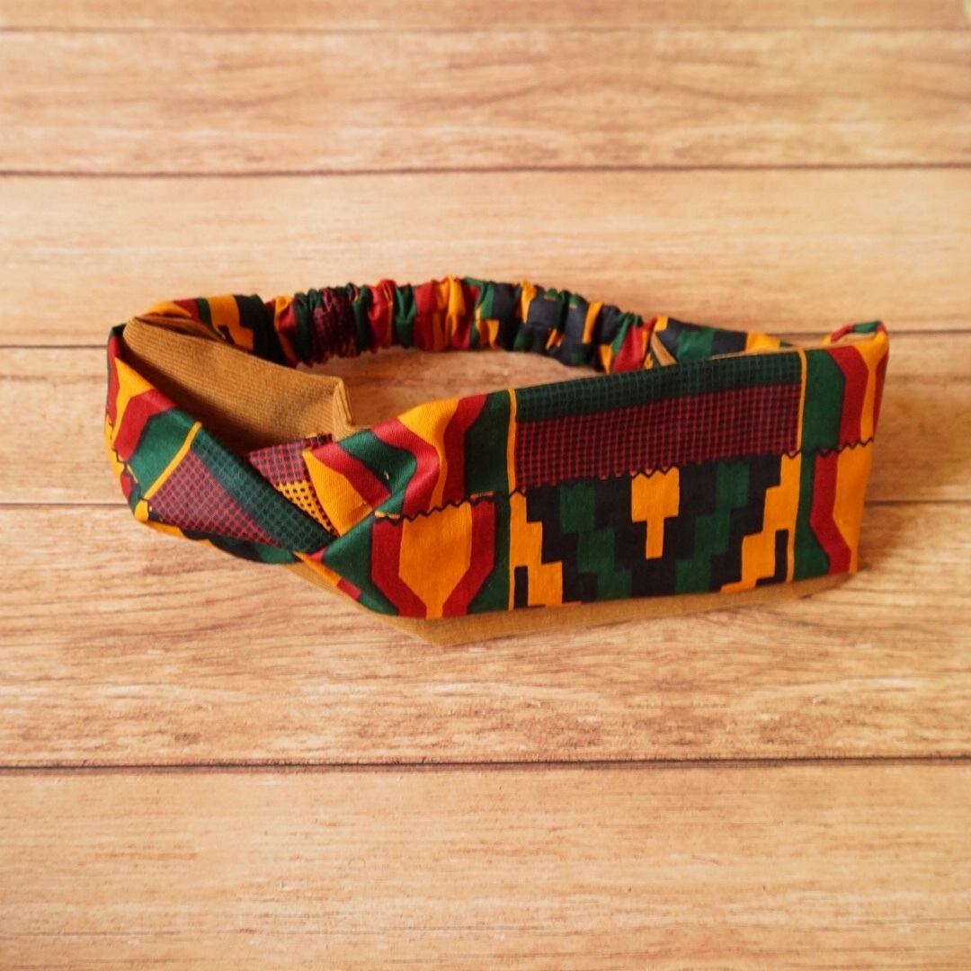 コーデュロイ&アフリカ布を組み合わせたヘアバンド。