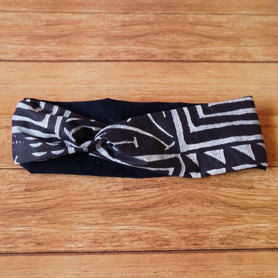 コーデュロイ&アフリカ布を組み合わせたヘアバンド。