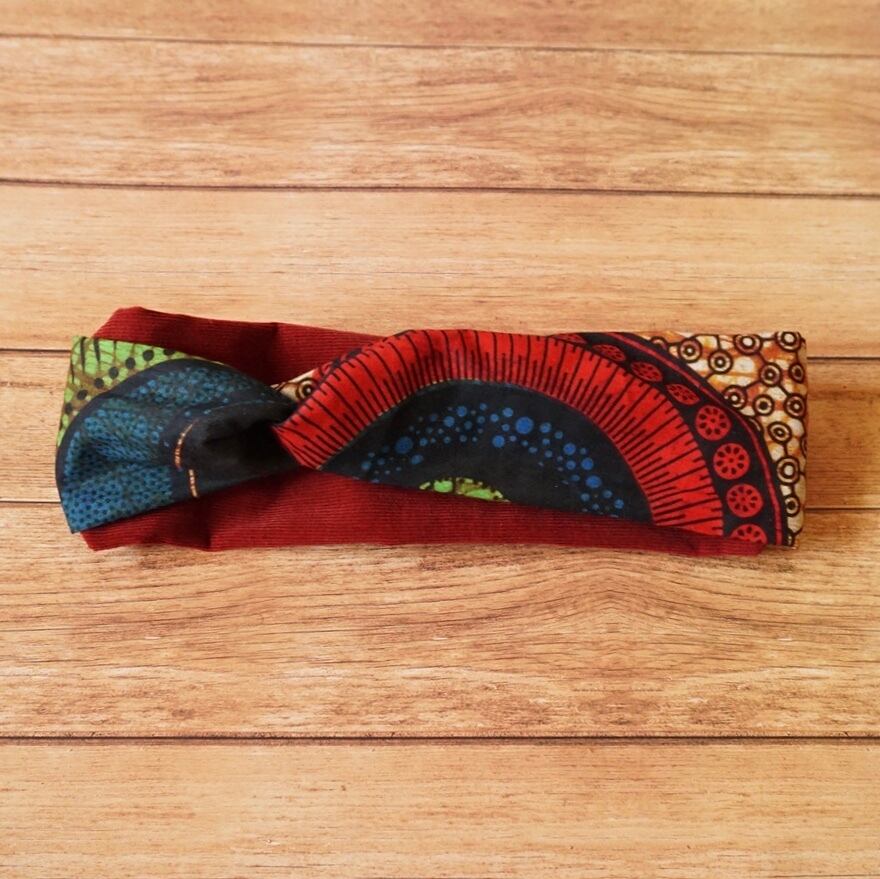 コーデュロイ&アフリカ布を組み合わせたヘアバンド。