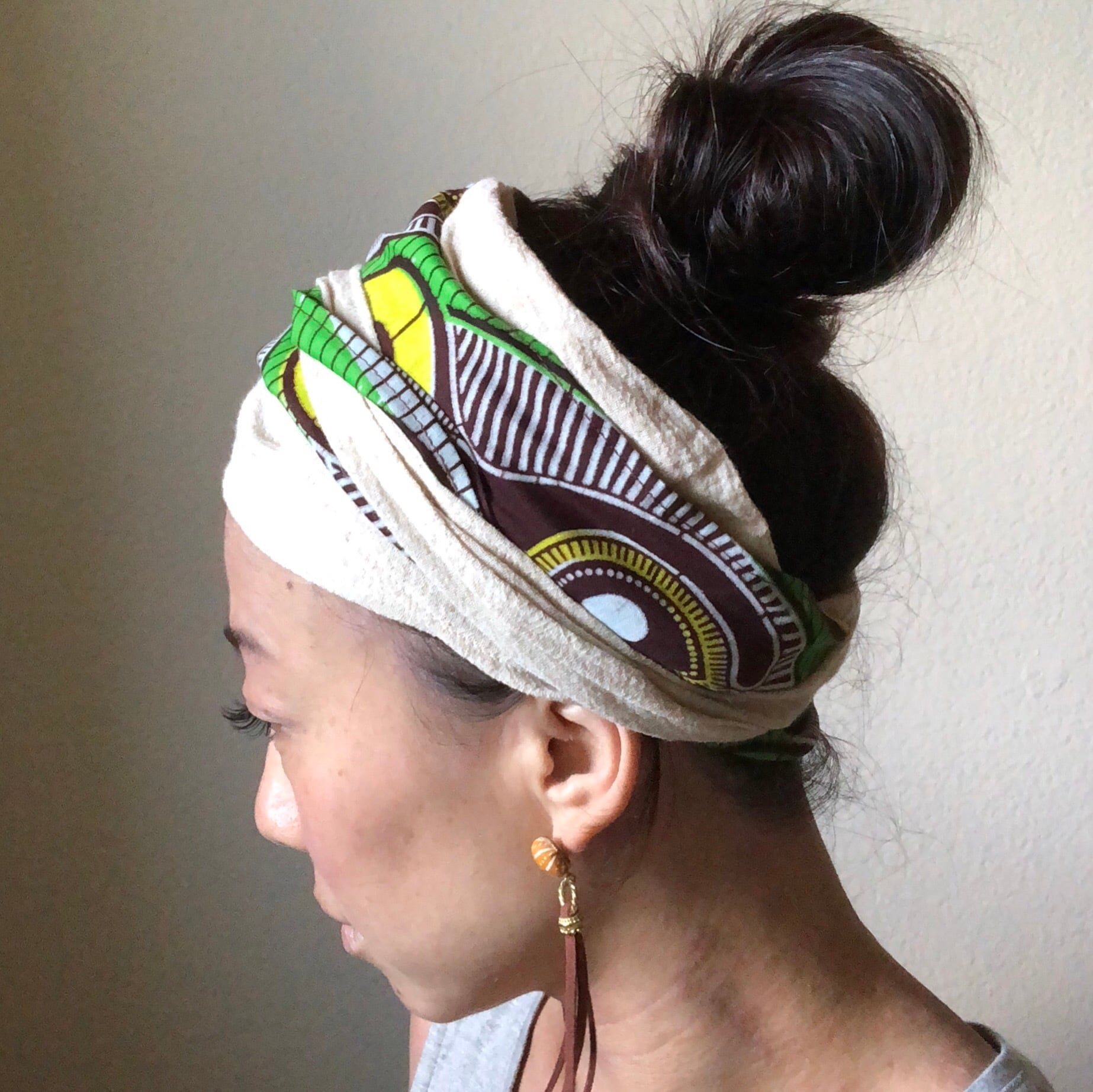 アフリカ布ヘアバンドベースターバン グリーン×生成り/BAOBAB