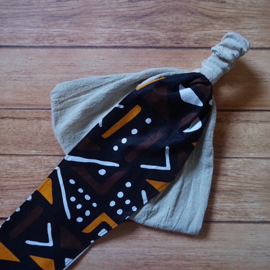 アフリカ布ヘアバンドベースターバン 泥染風×生成り/BAOBAB