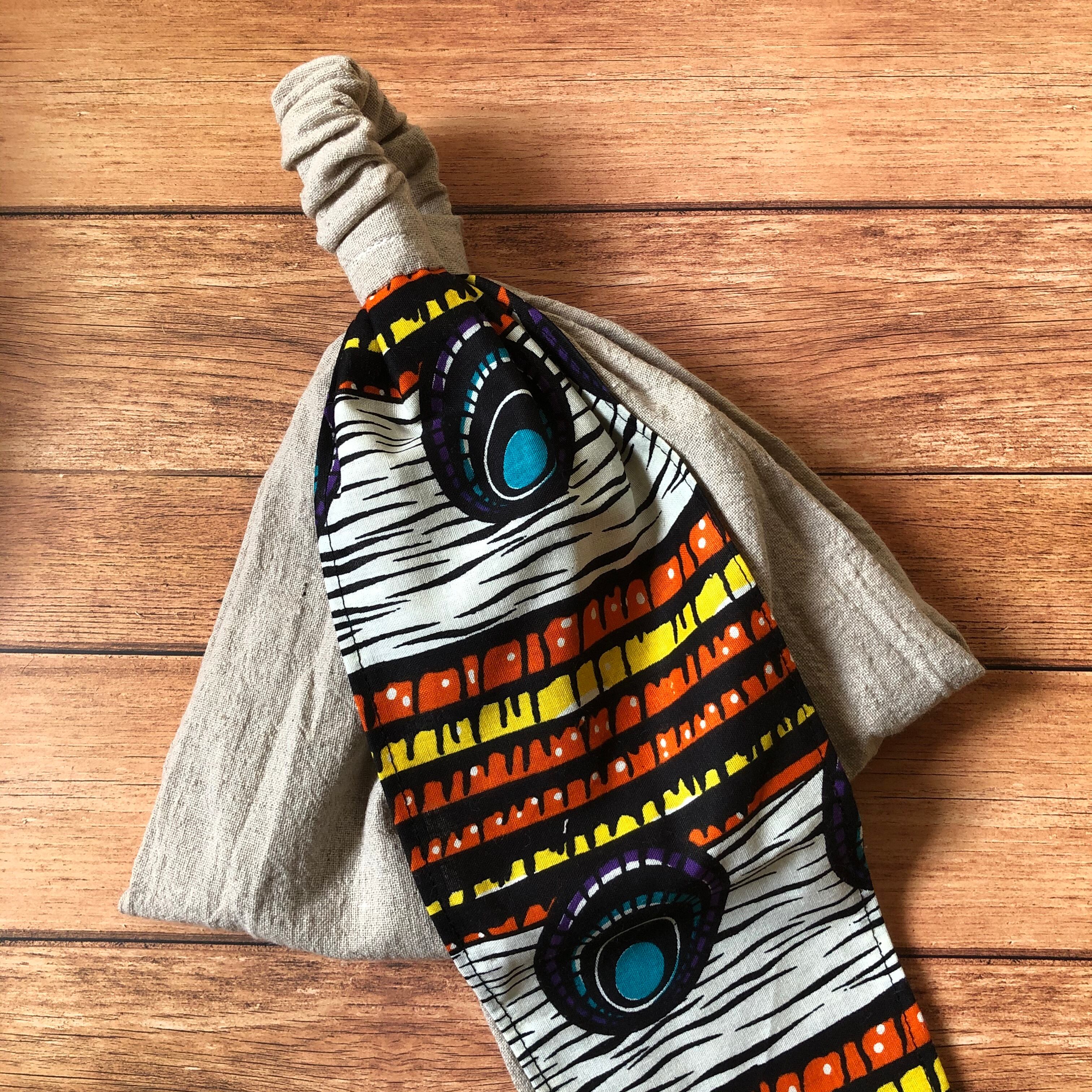 アフリカ布と無地の布を組み合わせています。