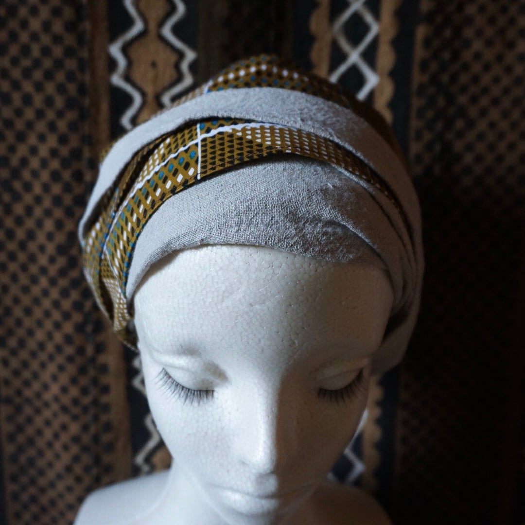 アフリカ布ヘアバンドベースターバン 生成り×ケンテキャメル/BAOBAB