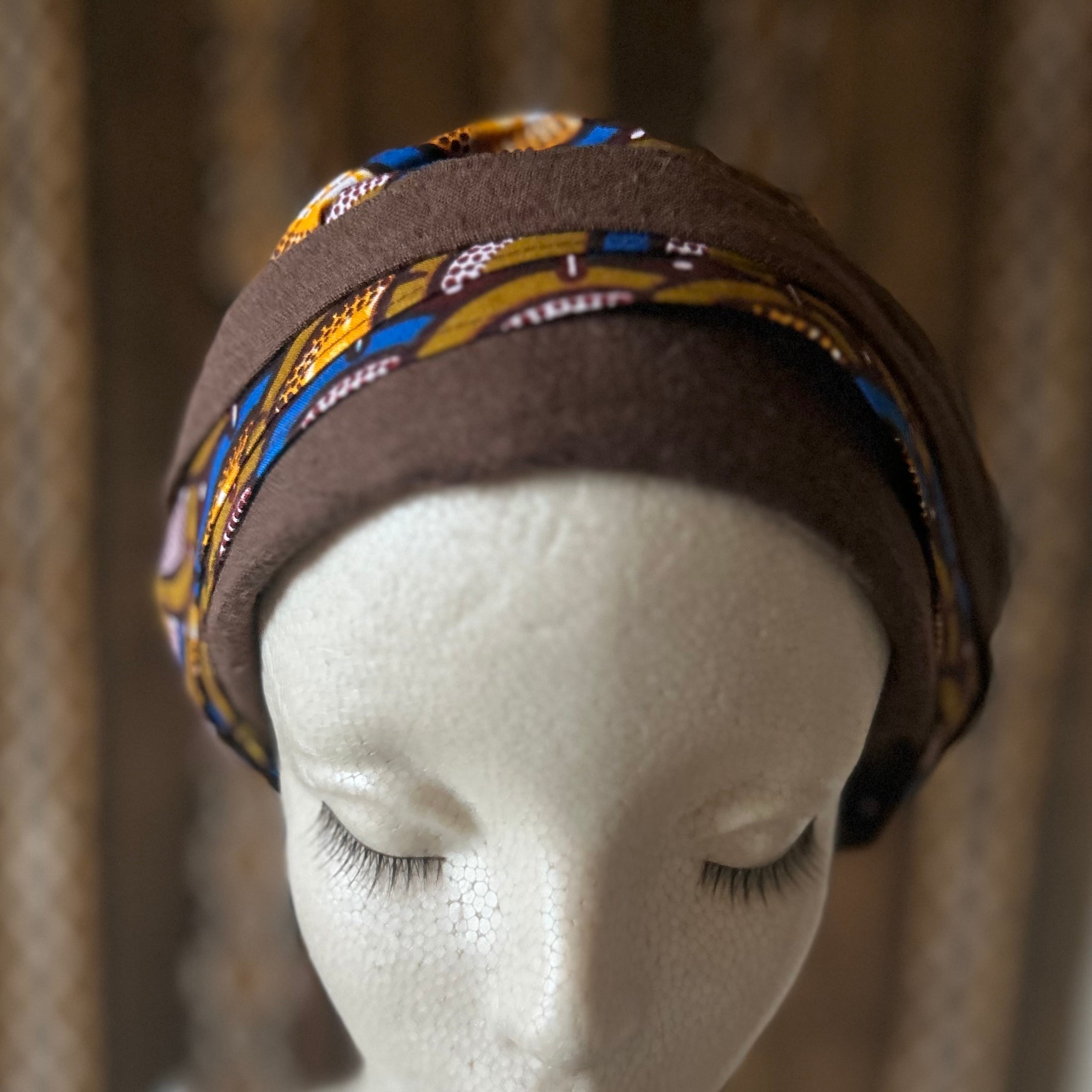 アフリカ布ヘアバンドベースターバン ブラウン×ブルーサークル/BAOBAB