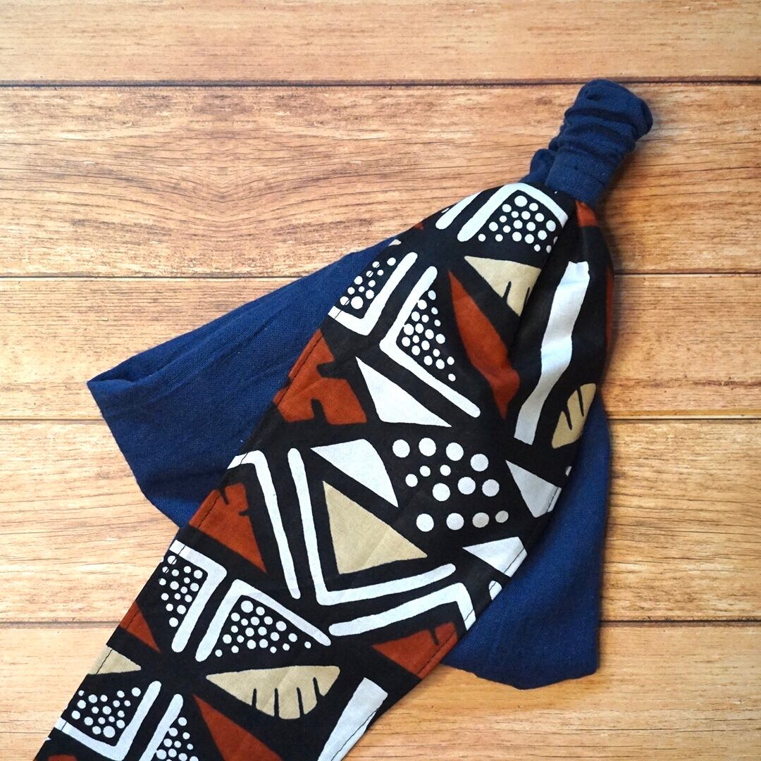 アフリカ布ヘアバンドベースターバン ボゴラン風×クリアブルー/BAOBAB