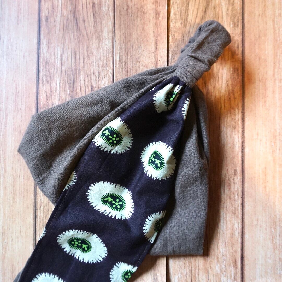 アフリカ布ヘアバンドベースターバン ブラウン×ビーンズバティック/BAOBAB